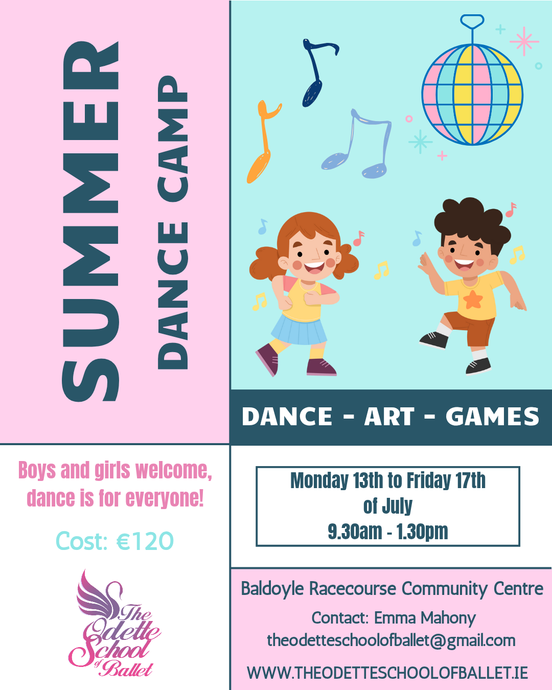 The Summer Dance camp will be held in the Baldoyle Racecourse Community Centre.